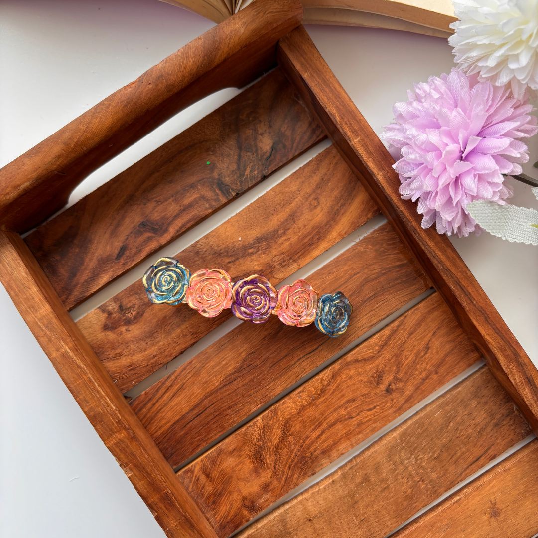 Featuring five vibrant resin roses, it brings a fresh and youthful vibe to your hairstyle.