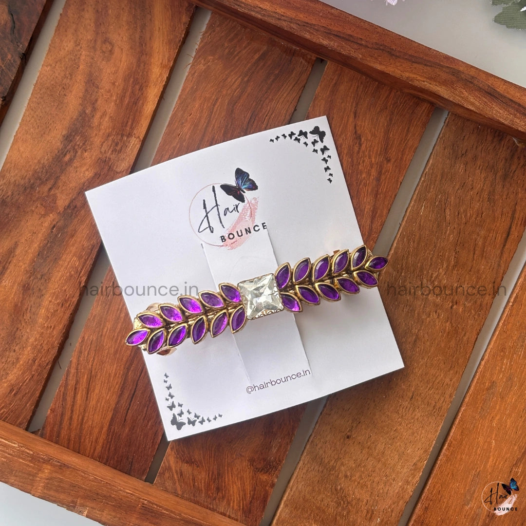 Royal Amethyst Leaf Crystal Barrette Hair Clip