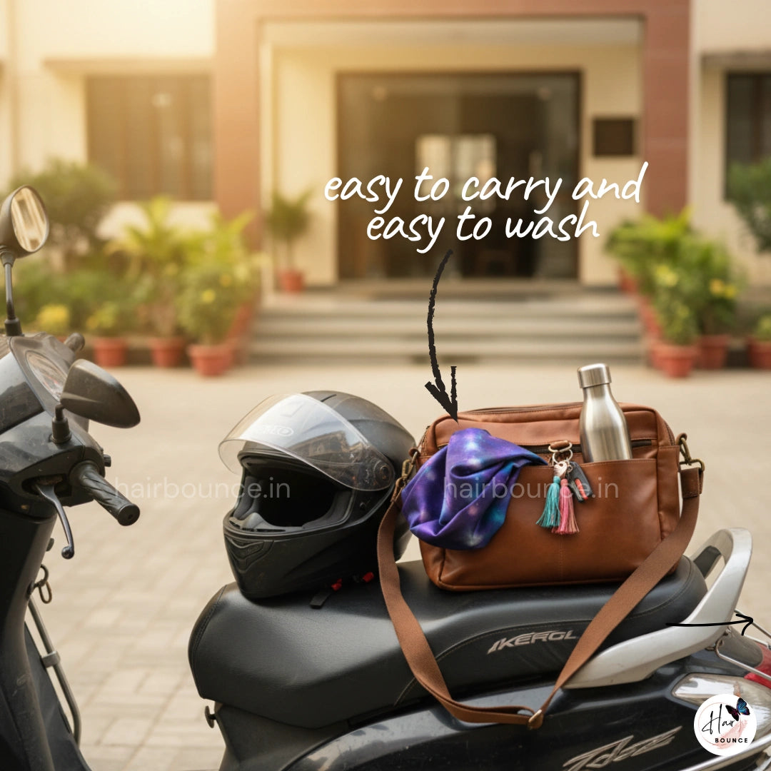 Perfect for all women who travel daily on two-wheelers — comfort + haircare in one 💁