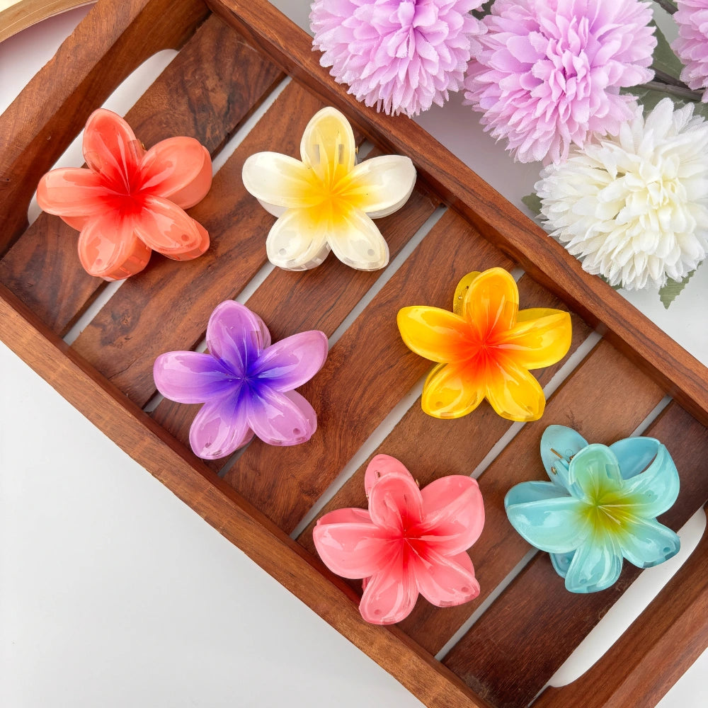 Glossy lily-shaped hair claws in bold and bright multicolor shades. Lightweight and secure, they’re perfect for everyday wear or adding a pop of floral charm to your festive hairstyles.
