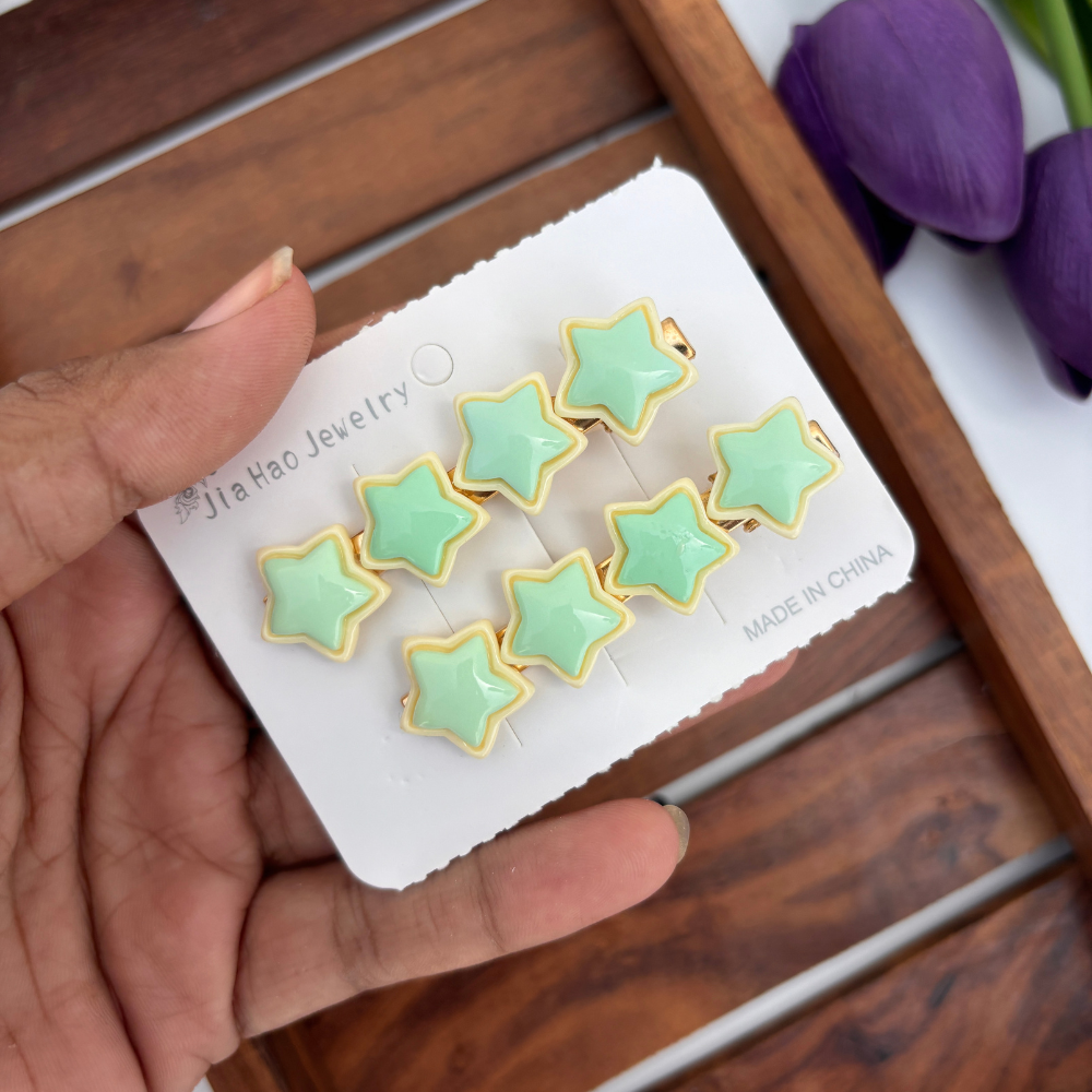 Fun and colorful star-shaped clips that bring a burst of cheer to any hairstyle. Lightweight, secure, and perfect for little ones who love to shine!