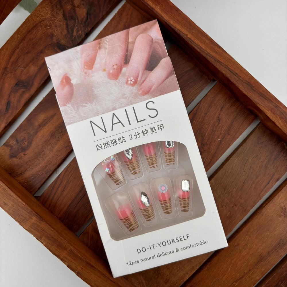 Get salon-style nails in minutes with this set of 12 press-on nails. Easy to apply, durable, and stylish—perfect for instant glam without the hassle.