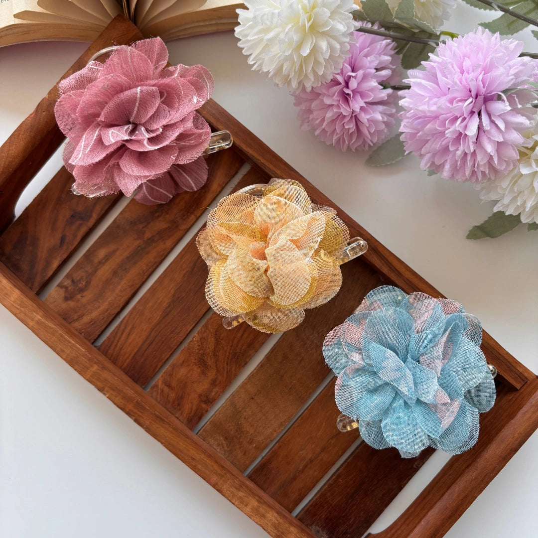 Crafted with layered mesh petals in beautiful pastel shades, each claw forms a fluffy, lightweight bloom that looks elegant and effortless.