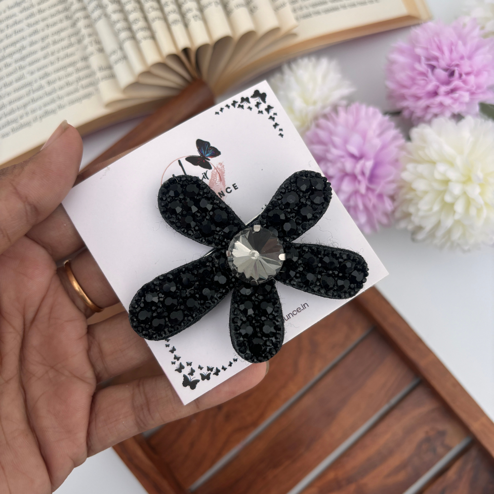 Add a touch of elegance with our Stone Filled Flower Alligator Clip. The sparkling stones and floral design make it perfect for both casual and festive looks. Its strong grip ensures your hairstyle stays neat all day.