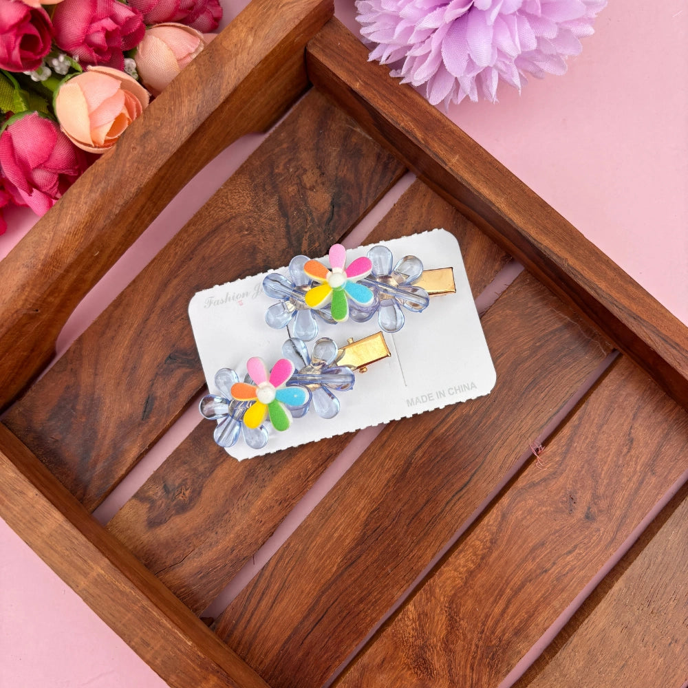 The Trio Bloom Clip Set includes two charming alligator clips, each adorned with three dainty flowers in soft, cheerful colors. Designed for a secure and comfortable hold, these clips add a fresh floral touch to any hairstyle. Perfect for everyday styling, festive outfits, or little garden-inspired looks!
