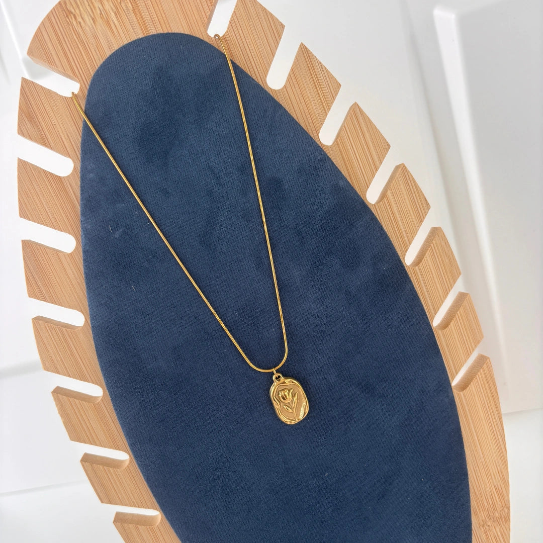Designed with an antique-style floral embossing on a gold oval pendant, this piece brings a touch of elegance and charm. The sleek chain adds simplicity, making it perfect for everyday wear or layering. A timeless keepsake with a vintage soul.