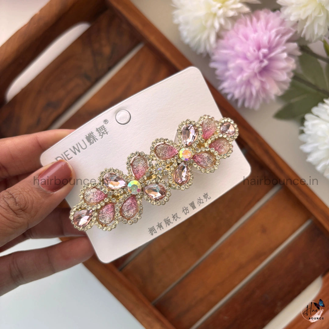 Add a touch of old-world glamour to your hairstyle with this Vintage Prism Blossom Bar Clip. Designed with delicately arranged floral motifs and multi-tone crystal stones, it sparkles beautifully with every movement. The antique-finish detailing gives it a regal, handcrafted look, while the smooth bar clip offers a secure and comfortable hold. Perfect for festive wear, weddings, and elegant evenings, this clip effortlessly blends vintage charm with modern shine.
